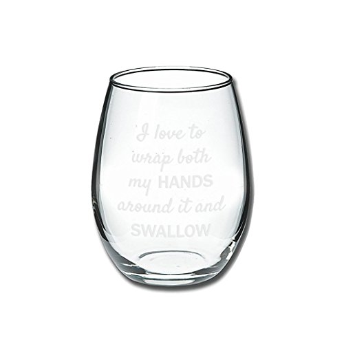 Beautifully Designed Funny Wine Glass! She will enjoy a relaxing evening with her new funny wine glass, which holds 15 ounces of her favorite wine! The Perfect Unique Wine Glass Gift For Wine Lovers Top present for a Birthday, Valentines Day, Anniversary or Mothers day for women. Ideal for cheap Christmas stocking stuffers, Hanukkah, xmas secret santa, 2017 holiday office party or white elephant exchange gift. Designed and Printed in the USA "I love to wrap both my HANDS around it and SWALLOW" is printed on one side. 100% Clear Glass material, which is Dishwasher safe. It's a fantastic gift idea she will love! We guarantee she will love it - that's why we offer you a money back warranty in case you don't! So What Are You Waiting For? Order Your Own Unique Wine Glass - While Supplies Last! Just Click 'Add To Cart!' 0 |