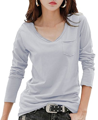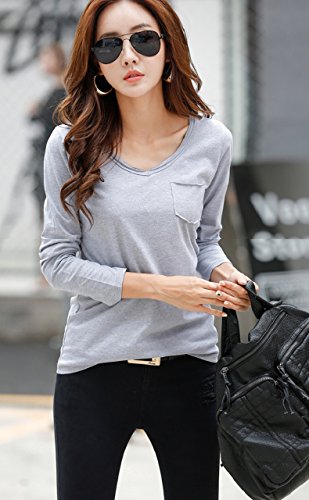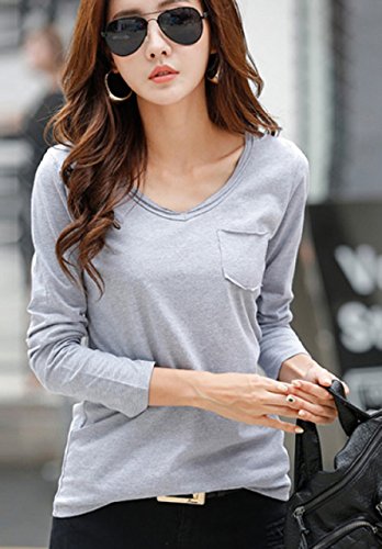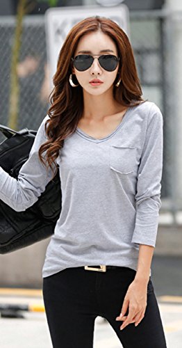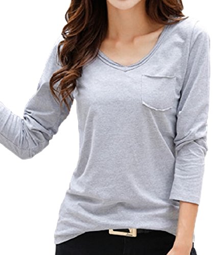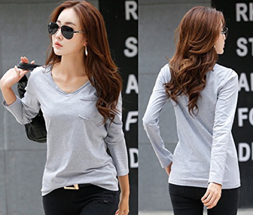 -. Title : (シーデフ)cdef レディース トップス カットソー Vネック シンプル 無地 長袖 ポケット インナー 春 夏 秋 冬 159