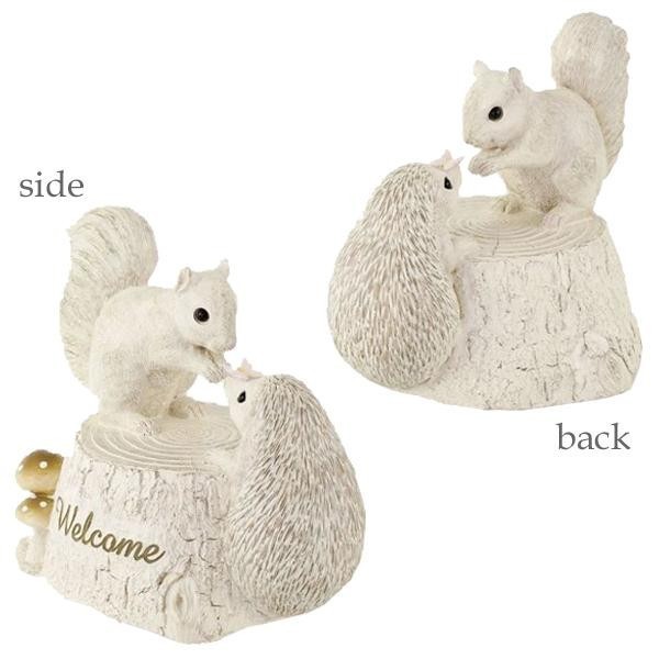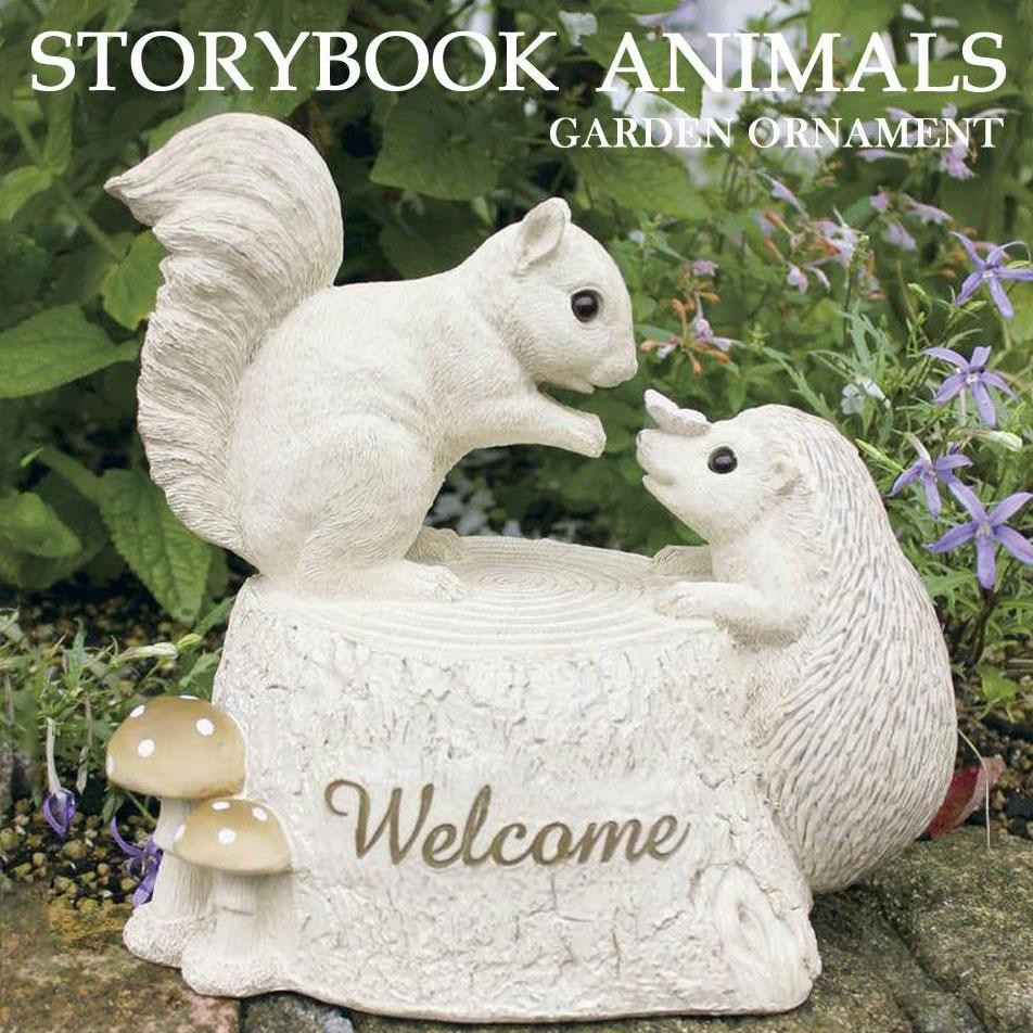 まるでおしゃべりをしているような姿が愛らしいリスとハリネズミのオーナメント。歓迎のメッセージ入りなので玄関にもオススメです。 製造国:中国 素材・材質:ポリレジン 商品サイズ:W245×D175×H210mm ※サプライヤー直送品 ご注文後3~4営業日後の出荷となります【商品名】ストーリーブックアニマルズ ガーデンオーナメント Squirrel×Hedgehog KH-61027