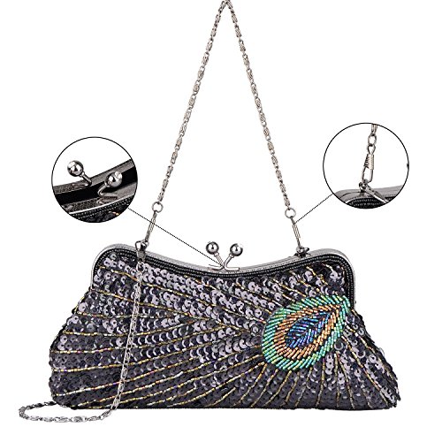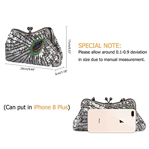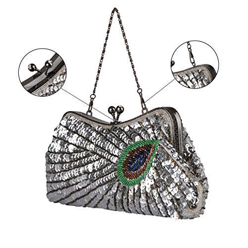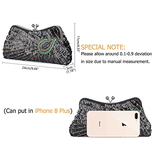 Kisschic Women's Vintage Beaded Sequin Peacock Purse Evening Bags and Clutches Specifications: Occasion: Event / Party / Wedding / Formal / Office Career Gender: Women Pattern: Peacock Type: Purses, Clutch, Handbags, Bags, Evening Bags, Clutches Purses, Clutches, Evening Purses, Evening Clutch, Women's Handbag, Wedding Purse, Blue Clutch, Beaded Purse, Wedding Clutch, Purses Handbags, Evening Bags and Clutches, Pearl Clutch, Silver Clutch, Cocktail Purse, Beaded Clutch,Champagne Clutch. Embellishment: Peacock Season: Winter, Fall, Summer, Spring, All Seasons Dimensions: 20cm(L) * 3cm(W) * 13cm(H) Closure Type: Kiss Lock Pocket: One Interior slip Main Materials: High-quality Satin, Beading and Sequins Package List: 1 x KISSCHIC Clutches Bags 1 x 38cm Short Chain 1 x 120cm Long Chain SPECIAL NOTE: 1. Please allow around 0.1-0.9 deviation in size and weight due to manual measurement. 2. Please allow the smell in the course of packing and shipping, but it will be disappeared in a few days air out. 3. It is true and accurate to describe our clutch bags, no exaggeration expression and maybe a little color difference caused by the computer monitor setting and the reflection in photography. ABOUT US The idea of KISSCHIC is HANDMADE, FASHION and ENVIRONMENTAL PROTECTION. Click Amazon's KISSCHIC Store you'll find our more products and discount. Leave your questions we will answer you as soon as possible. If you have any smarter ideas about our clutches, please share in your REVIEW. 0 |