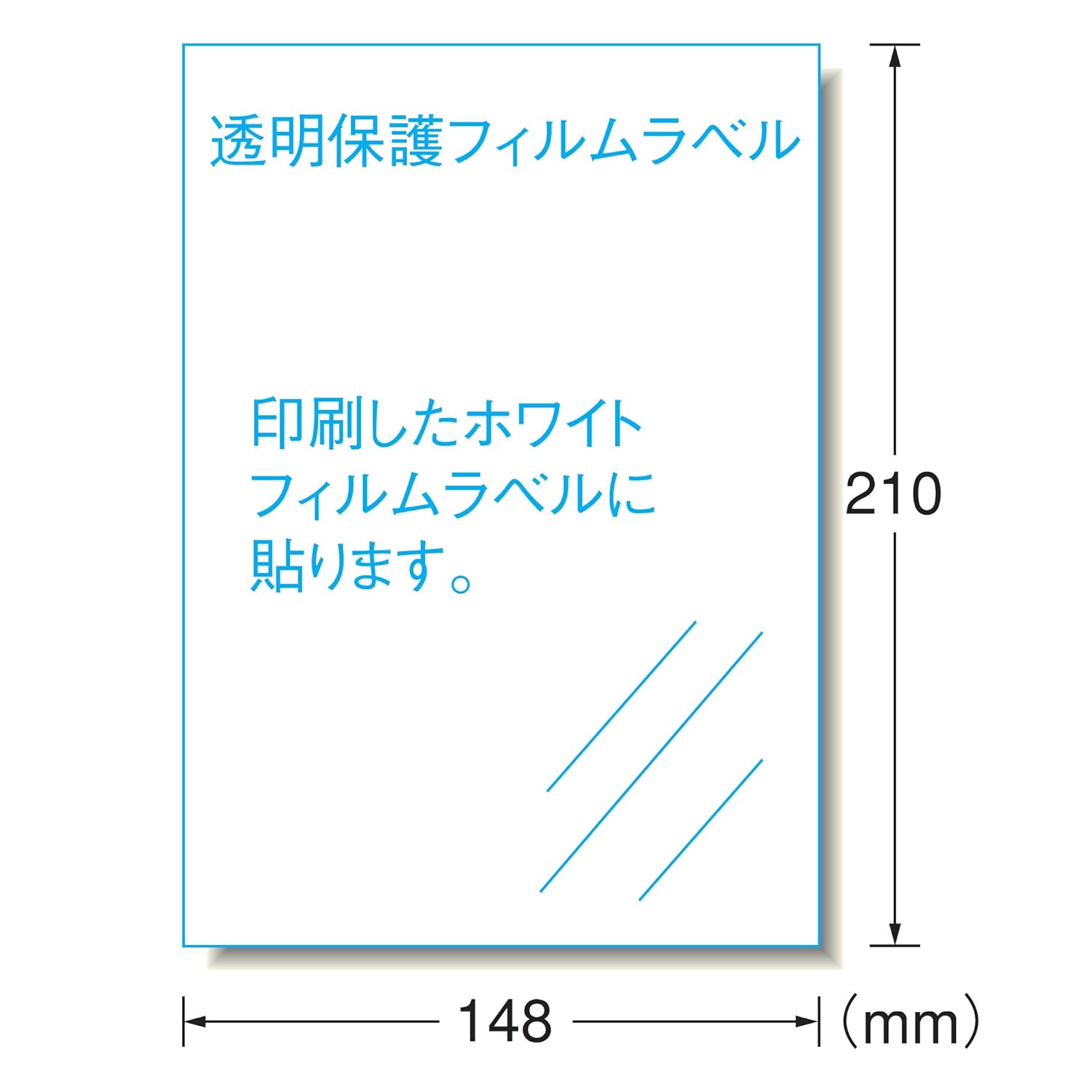強粘着タイプ 印刷用ホワイトフィルムラベル+保護用透明フィルムラベル/材質:ポリエステルフィルム/標準総厚み:0.15mm/ラベル厚み:0.10mm カバーフィルム厚み:0.07mm A5判 ノーカット/シートサイズ:A5判(148mm×210mm)/ラベルサイズ:148mm×210mm 対応プリンタ:インクジェット(染料+顔料)