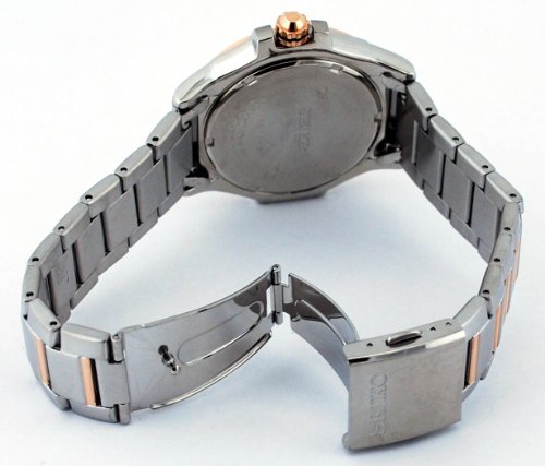 Every modern man needs a timepiece in his wardrobe. Keep time fashionably with this white watch made by Seiko and heavily discounted from the retail price. We take all our own photos to present you with realistic and vivid detail. Band Length: 8.5 in. | Water Resistance: 330 feet | Display: Analog | Closure: double-locking-fold-over | Shape: Round Item SKU: SRL034Feature