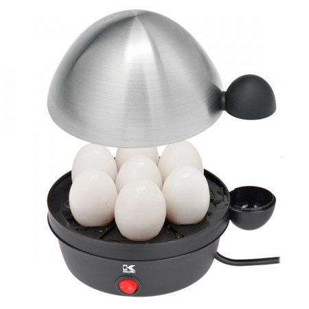 Ideal for hard boiling, soft boiling, and poaching eggs. Stainless steel lid. Stainless steel heating plate. Buzzer indicates end of cooking time. Automatic shut off. Removable lid and egg tray for easy cleaning. Capacity: 7 eggs. Also includes poaching tray for 2 eggsFeature