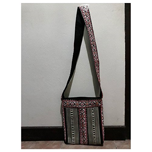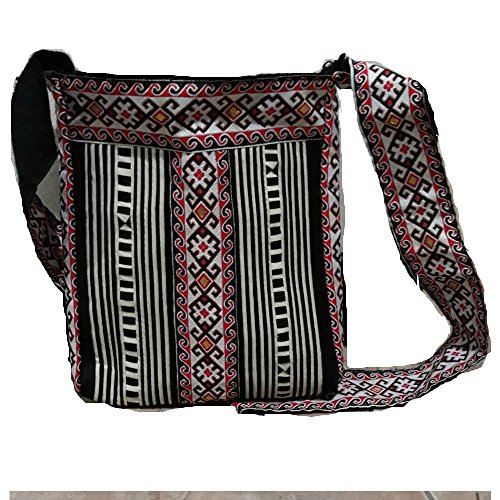 Shoulder bag hippie Shoulder Bag Handmade Cotton Black White Red Shopping Bag Thai Top Zip Handmade