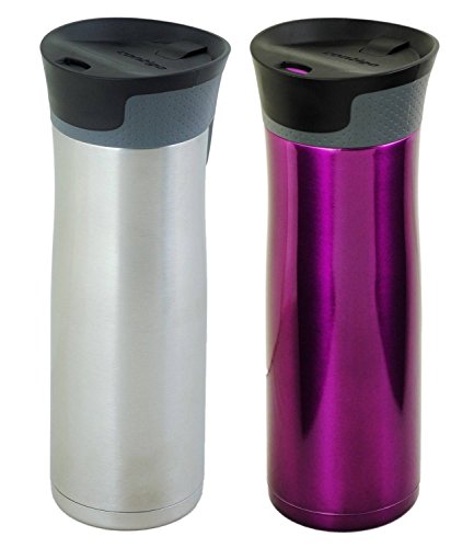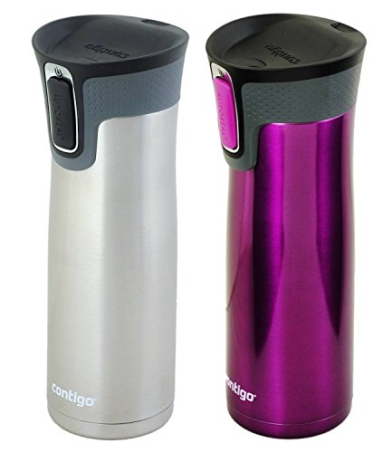 -. Brand : Contigo -. Feature : 20 ounce capacity; Open-Access lid allows for easy cleaning / Vacuum-insulated technology keeps your drinks hot for up to 7 hours and cold for up to 18 hours / Patented Autoseal lid automatically seals between sips to prevent leaks and spills / Convenient one-handed operation for right & left handed drinkers / Top rack dishwasher safe lid; Hand wash body -. Label : Contigo -. Manufacturer : Contigo -. MPN : 16712-SRO -. PackageQuantity : 1 -. PartNumber : 16712-SRO -. ProductGroup : Kitchen -. ProductTypeName : KITCHEN -. Publisher : Contigo -. Studio : Contigo -. Title : Contigo Autoseal West Loop Travel Mug with Open-Access Lid, Stainless & Radiant Orchid - 20oz (2 Pack)