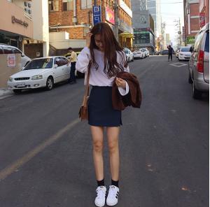 オーバーサイズのニットに合わせれば、ミニマムな可愛いコーデの出来上がり⭐
