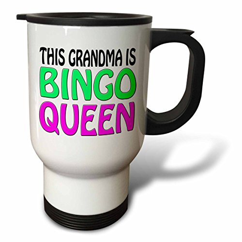 3dRose tm_149771_1 This Grandma Is Bingo Queen, Hot Pink, Lime Green, Travel Mug, 14-Ounce, Stainless Steel