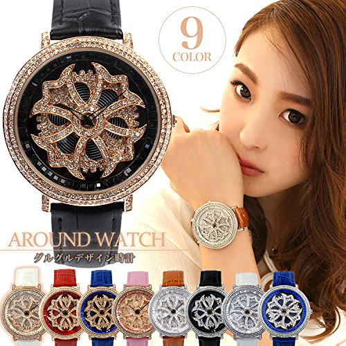 원본상품명:AROUND-WATCH 本革グルグル時計(ゴ?ルドフェイス) [文字盤が回る くるくる時計 ぐるぐる時計 ビッグフェイスデザインウォッチ 腕時計]