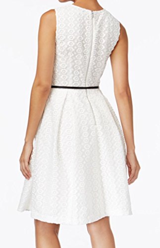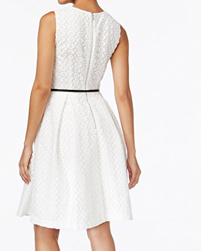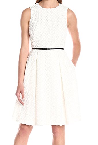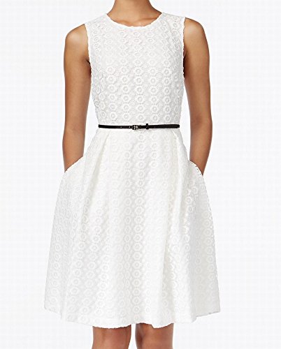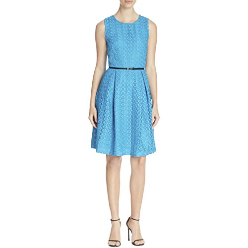 Product DescriptionSleeveless geometric floral lace fit and flare dress with pleat0
