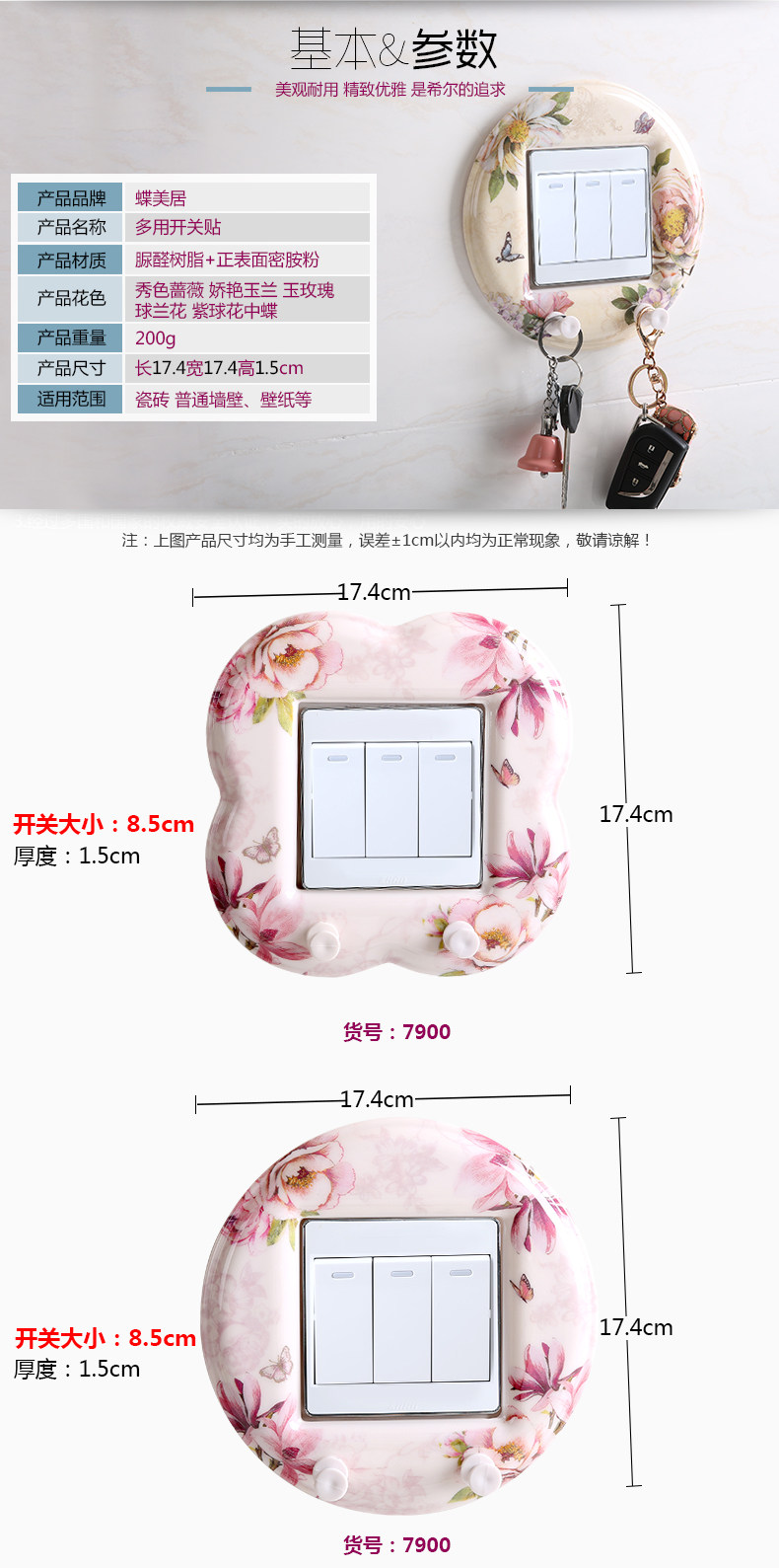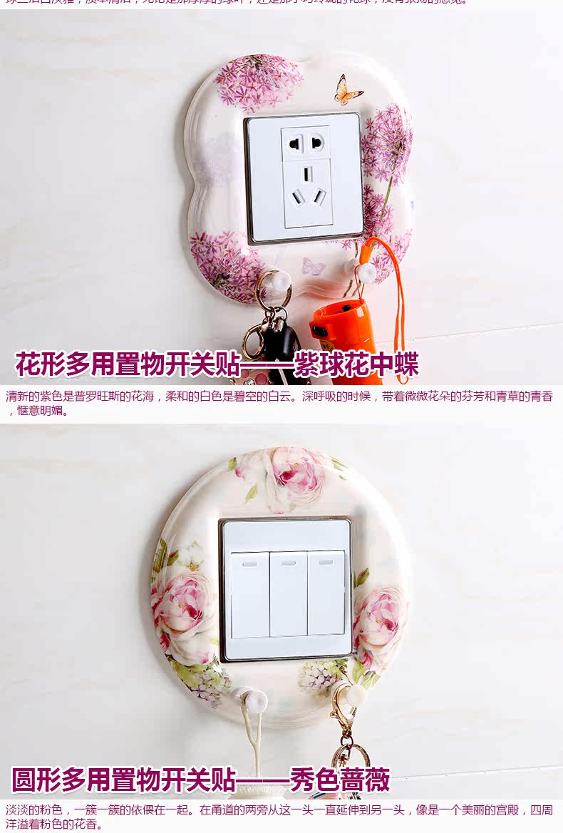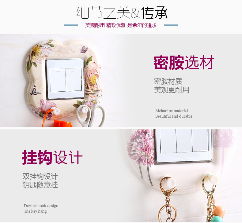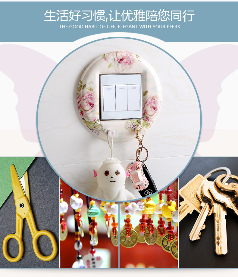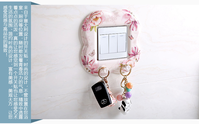 欧式开关贴 创意开关保护套墙壁贴进门钥匙衣服挂钩