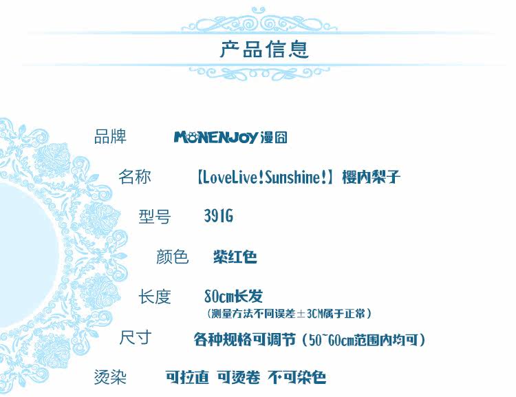 LoveLive!Sunshine!! 樱内梨子水团cosplay假发 现货
