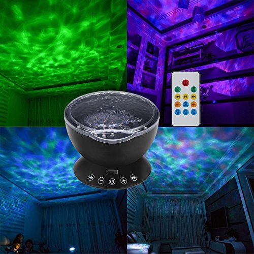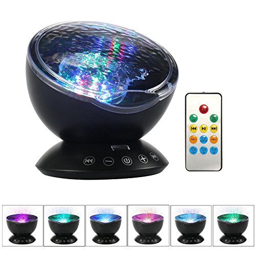 Willcome Upgraded Generation Remote Control LED Projector Ocean Wave Projection Lamp with Built-in Music Speaker and 7 Different Colors for Kid Sleeping...