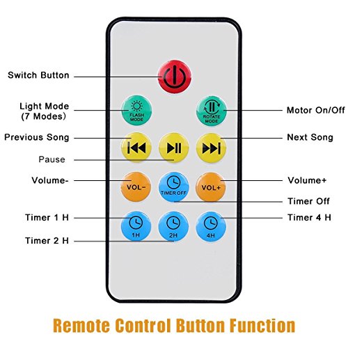 - Auto Off Timer & Angle Adjustable - Intelligent Auto Power off After Timer 1H/2H/4H for Your Choose, the projector light swivels from straight up to angled forward or cast in a different direction according to your needs at a 45 degree angle