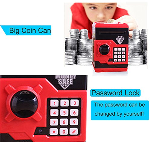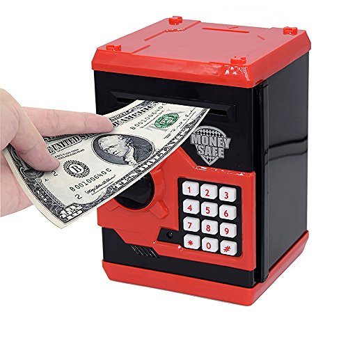 This "MONEY SAFE" guards your personal stuff. Use the sale to store things like your paper money, play jewelry, baseball cards or playing card. The coins slot at the top lets you use the safe as a piggy bank.