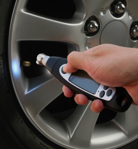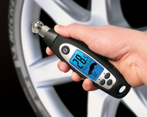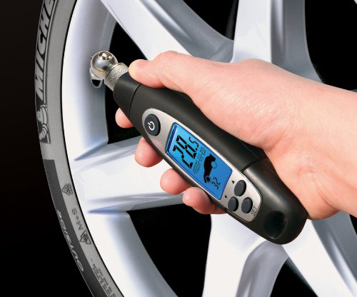 - Feature : Designed to measure PSI from 5-99 pound units / Records factory recommended pressure of both front and rear tire / Features white LED flashlight to facilitate checking tire pressure at night / Includes metal eye glass style storage case / Backed by 5 year warranty against defects in materials and workmanship