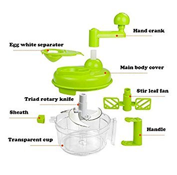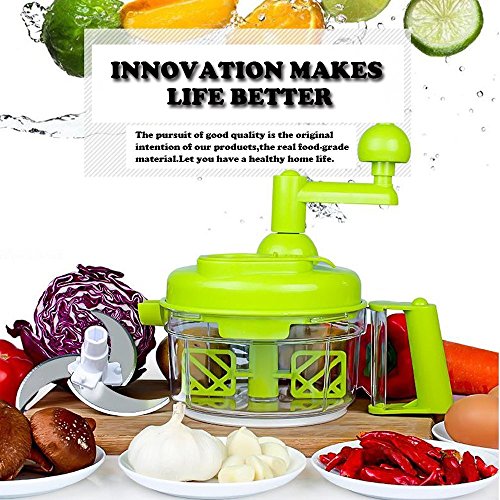 - ★MULTIFUNCTION: The Food Chopper perfect for slicing vegetable salads, chopping nuts, herbs, veggies, pesto, hummus, salsa, meat and more. Running without electricity, The Manual Food Processor is great for small kitchens, RVs, travel, and camping