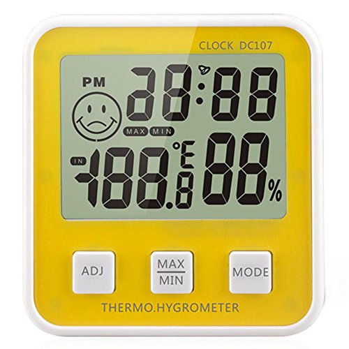 -. Feature : 室内温度湿度を表示する,摂氏度と華氏度を切り替えすることができる。 / 温度範囲 -10℃~+50℃ (+14F ~ +122F), 湿度範囲 20%RH~99%RH,MAX/MIN温湿度値を記録することもできる / 時間を示して、目覚し時計セットもいいだ。 / 給電 1.5V (AAA ) ×1 / 背面には磁性がある。冷蔵庫に貼るだけではなく、テーブルの上にも立つのは大丈夫だ。