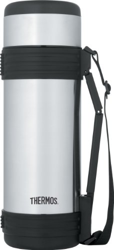 - Feature : Thermos vacuum insulation technology locks in temperature to preserve flavor and freshness to keep beverages hot or cold for 24 hours / Durable 18/8 stainless steel interior and exterior withstand the demands of everyday use / Convenient twist and pour stopper makes serving simple; Retractable handle provides a steady grip for pouring / Built-in stainless steel cup lets you serve beverages anywhere / Detachable shoulder strap makes it easy to take beverages with you