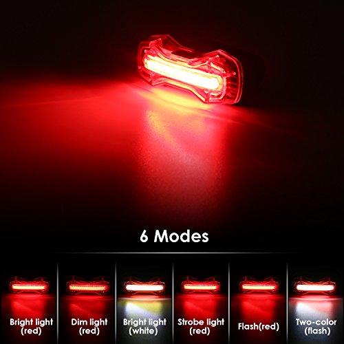 6 Light Modes Red Light Mode: Bright light---Dim light---Strobe light--Flash light, White light Mode: Bright light, Two-Color (white and red light ): Flash mode