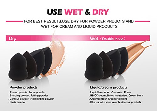 These sponges are water-loving and work best wet, but they can also be used dry. When wet, the sponges expand and become softer so that the makeup product can sit on top of them rather than being absorbed. This allows less product to be used every time. The sponges return to their original size when dry.