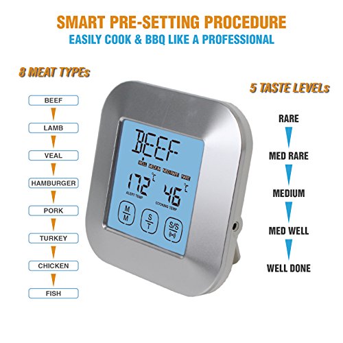 - SMART BUILT-IN PRE-SETTING PROCEDURE- 8 Types of Meat ( Beef, Lamb, Veal, Chicken, Hamburger, Pork, Chicken, Turkey and Fish) & 5 Tastes Levels (Well Done, Medium Well, Medium, Medium Rare and Rare). Built with beeping alarm when properly cooked. Smart cooking like professional!