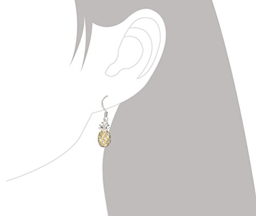 -. Title : Sterling Silver with 14kt Yellow Gold Plated Accents Pineapple Dangle Earrings