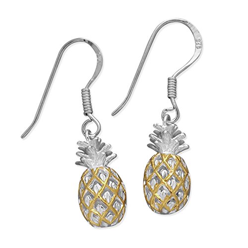 -. Feature : Three Dimensional Design / Fun And Cute Pineapple Earrings / Sterling Silver With 14kt Yellow Gold Plated Accents / Includes Black Pouch And Black Jewelry Box / A Beautiful And Unique Hawaiian Gift