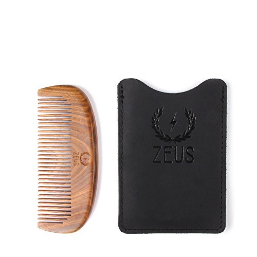 Zeus Organic Sandalwood Beard Comb with Leather Sheath!