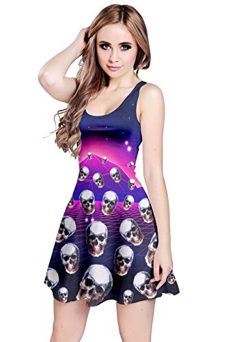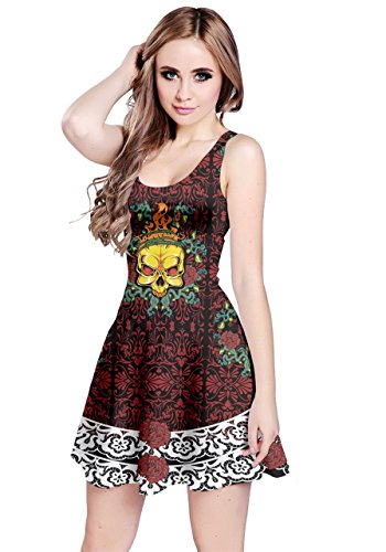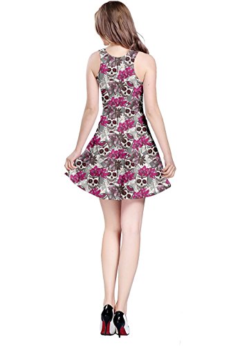 CowCow Womens Pink Gray Skull With Flowers Sleeveless Dress, Pink - XS