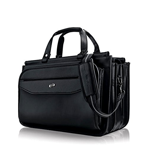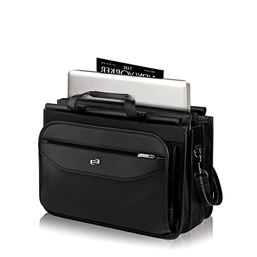Architect Briefcase, Leather Laptop for Men and Women, Black 15.6" Computer Triple Compartment ...