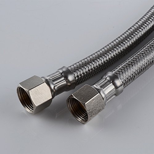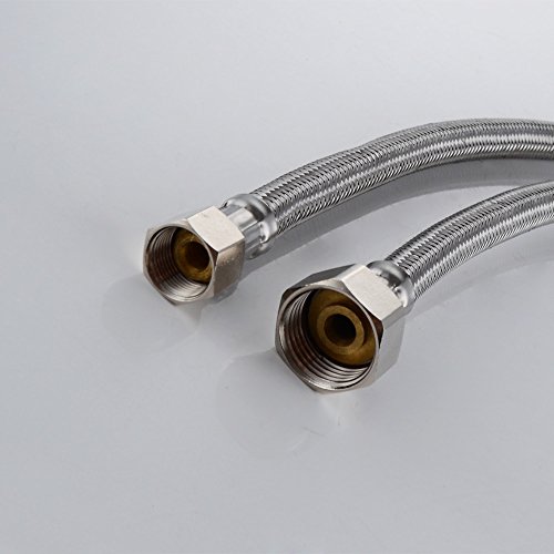 KES IUS2016-P2 Faucet Connector, Braided Stainless Steel - 9/16-24 UNEF Thread x G 1/2 Female Straight Thread, 16" Length x 2 Pcs (1 Pair)