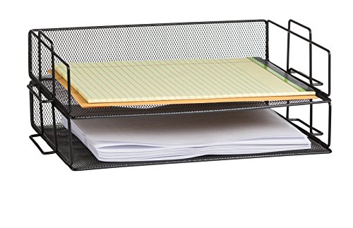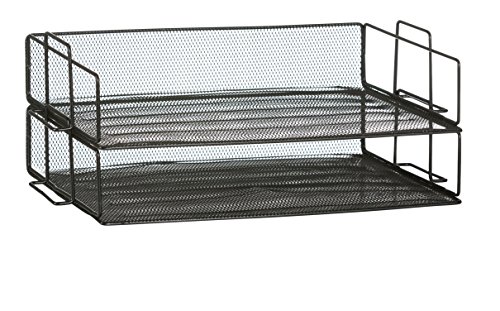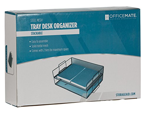 OfficeMate Classic Black Mesh 2 Tier Stackable Letter Tray Desk Organizer Perfect for Office Desk and Home Office