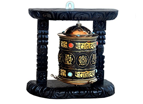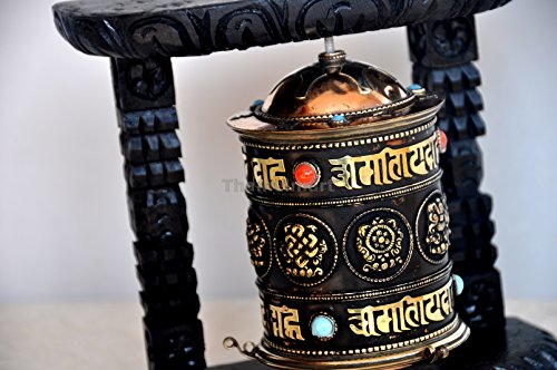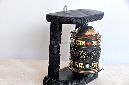 Studio : thamelmart Publisher : thamelmart Binding : Electronics Product Description This prayer wheel is 7 inches tall, 7 inches wide, and 2 inches thick. This prayer wheel was handmade in Nepal. This prayer wheel is made from copper and brass material. There are turquoise and coral stones on the outside of the prayer wheel. The Tibetan Buddhist mantra, om mani padme hum,and 8 auspicious symbols are around the outside of the prayer wheel. 0