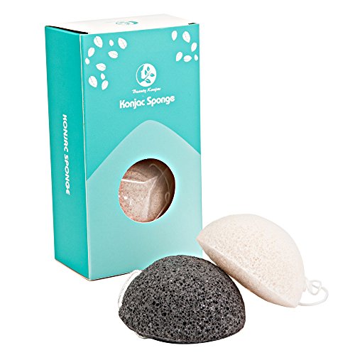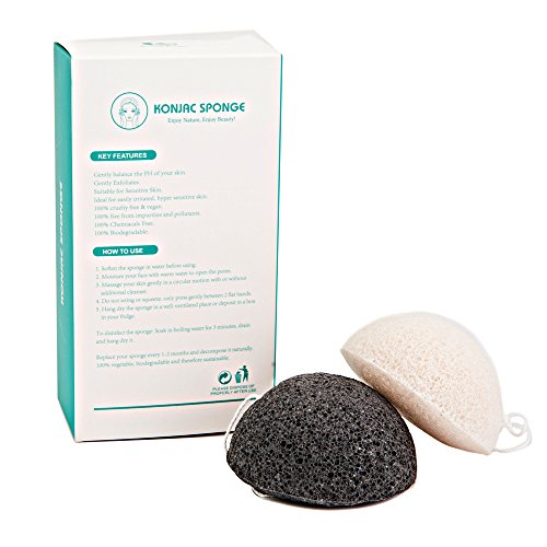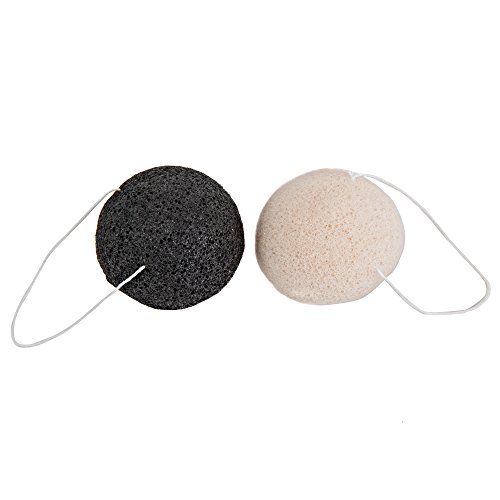 100% Natural Konjac Sponge: 2pieces pack with white and charcoal