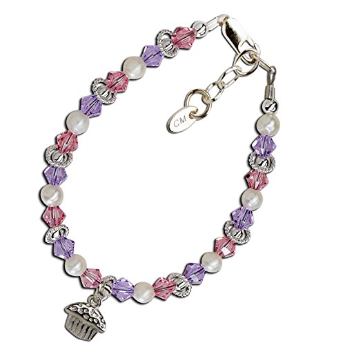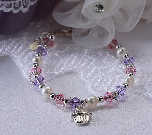 -. Feature : Luxury Bracelet for Children, Hand Strung in the USA / Each bracelet has adjustable sizing / Sterling Silver, Cultured Pearls, Swarovski Crystals, and Sterling Silver Cupcake Charm / Fun Birthday Gift for Girls with Cupcake Charm and Comes in Gift Box / Beaded on strong stainless-steel wire, safe and durable for children