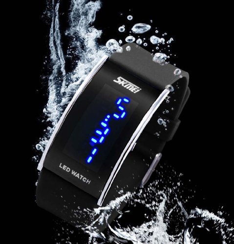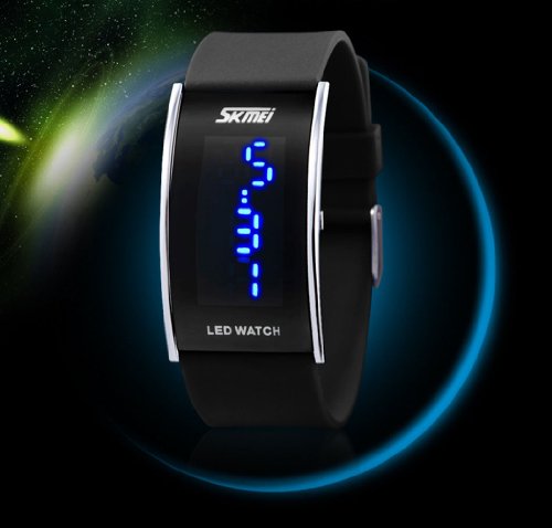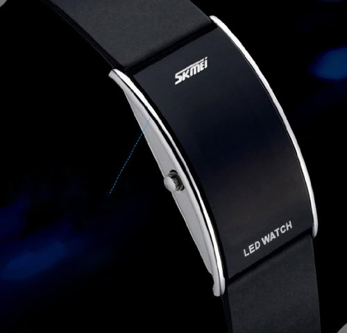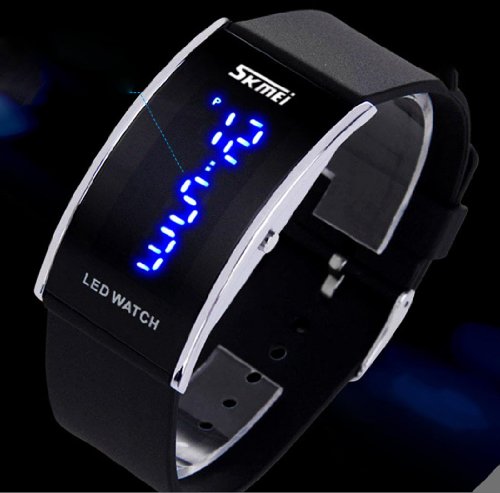 PARNIS BLUE LED LIGHT JELLY SPORTS WATCH BLACK SILICONE STRAP SILVER CASE MEN'S LADIES WRIST WATCH