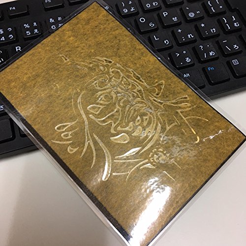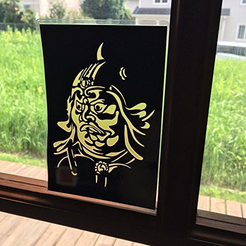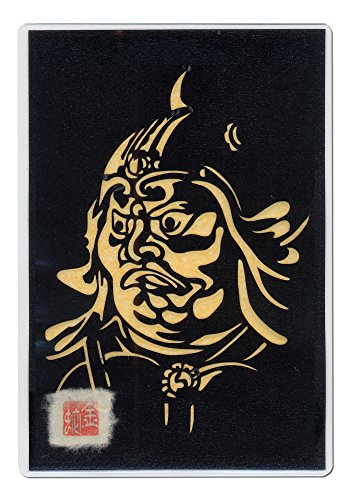 Japanese art collage KIRIE “Todaiji Jikokuten - The face -” Dhrtarastra (Buddhist deity) one of the Shitenno (the Four Heavenly Kings) Made by Washi(Japanese paper) Orange, 4” x 6”