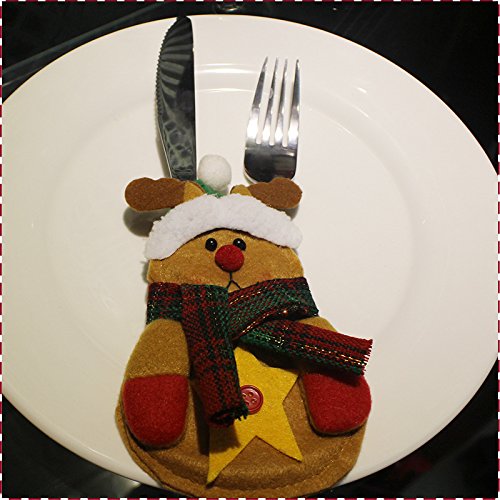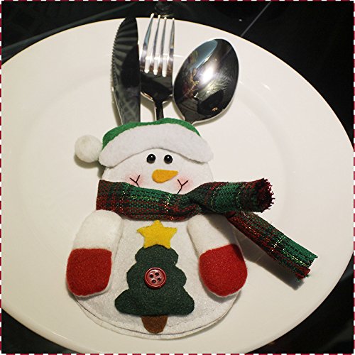 Peicees Christmas Silverware Holders Santa Snowman Elk Christmas Dinner Flatware Holders,Pack of 6