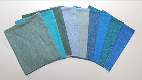 Burlap Solids Blues 10 pc Cotton Fabric Quilting FQs Assortment by Benartex Studio