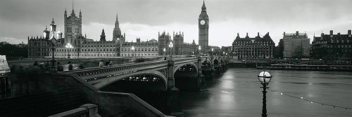Walls 360 Peel & Stick Wall Mural: Westminster Bridge at Night BW (36 in x 12 in)