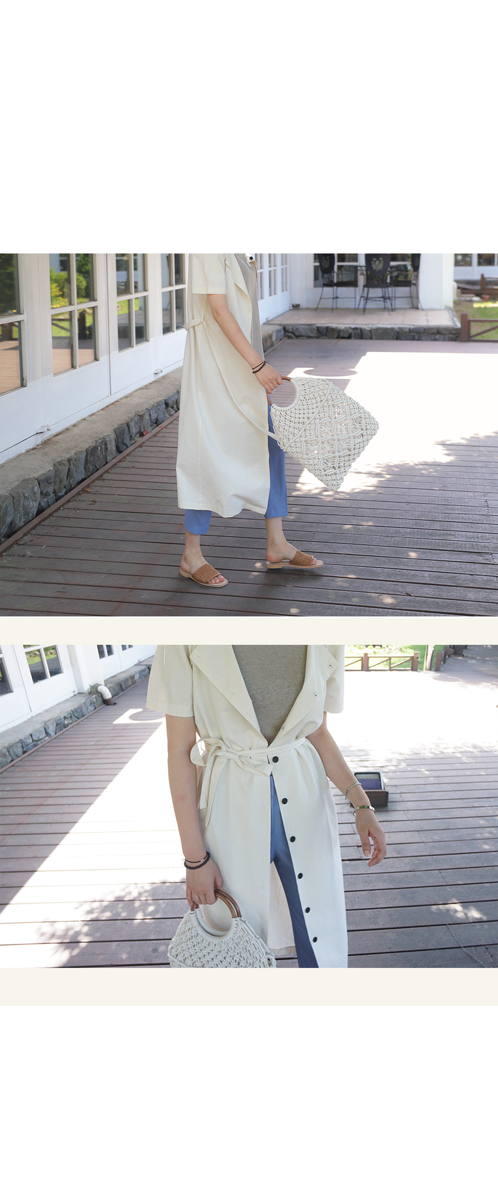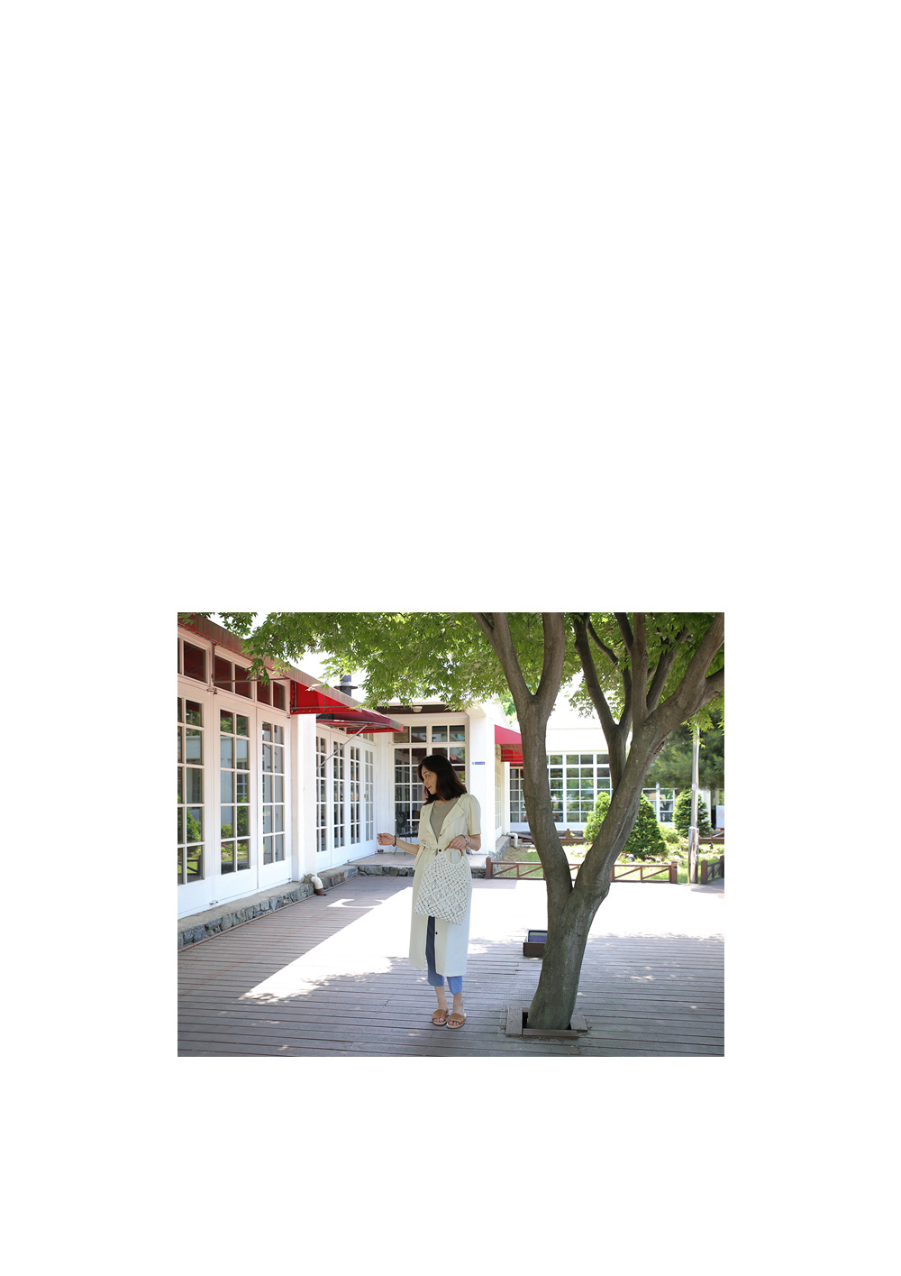 끈 로브형식이라 두 가지의 느낌으로 연출가능하며, 피팅컷처럼 끈을 묶지 않고 늘어 뜨려 착용해도 깔끔한 실루엣으로 마무리되구요 질끈 동여매도 핏이 무너지지않아 마음에 들었답니다-