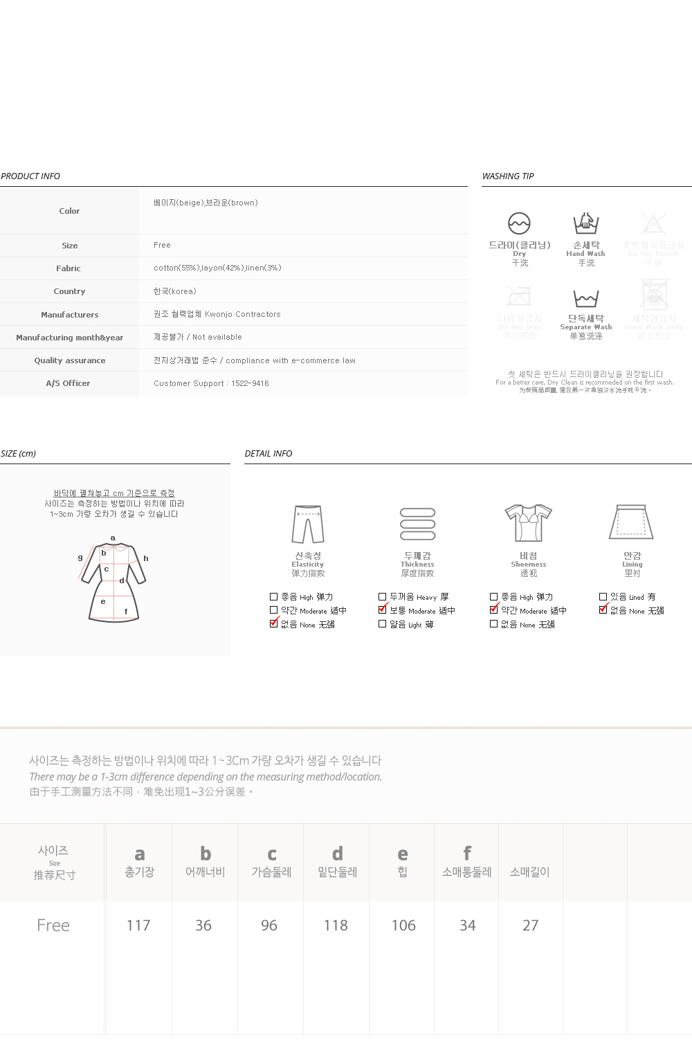 피팅 컬러와 사이즈는 베이지,Free입니다