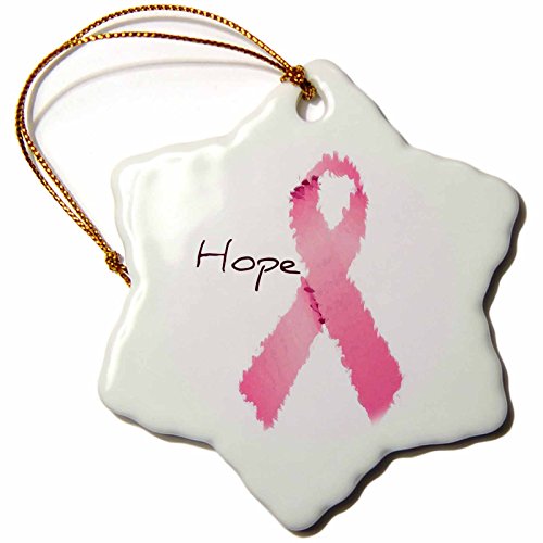 3dRose orn_42618_1 Painted Pink Ribbon Hope Art Breast Cancer Awareness Snowflake Decorative Hanging Ornament, Porcelain, 3-Inch