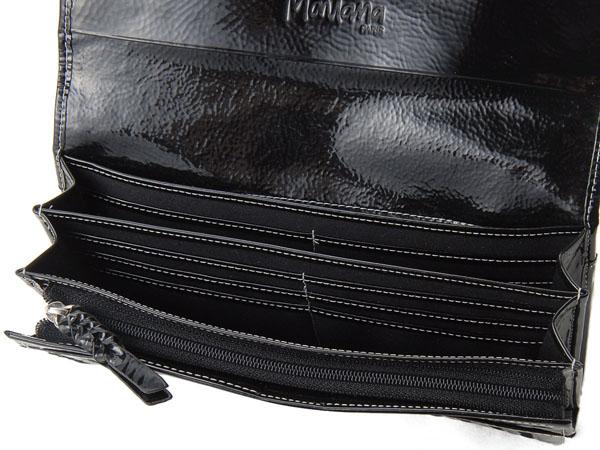 | モンタナの長財布です。表面をパテント加工を使っているので輝きがあります。また、カードを12枚入れることができて非常に便利です。 |
