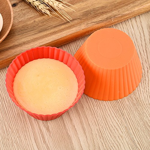 - ♦HIGH QUALITY - The silicone cupcake liners are made of FOOD GRADE silicone, with BPA free, FDA approved, no fillers, no chemical coatings, Temperature Safe from -40°F(-40°C) to 446°F(230°C),these baking cup holders can use in Oven, Microwave, and Freezer safe. Put the round baking muffin molds into your baking pan or on a baking mat directly. Voilà it is simple.