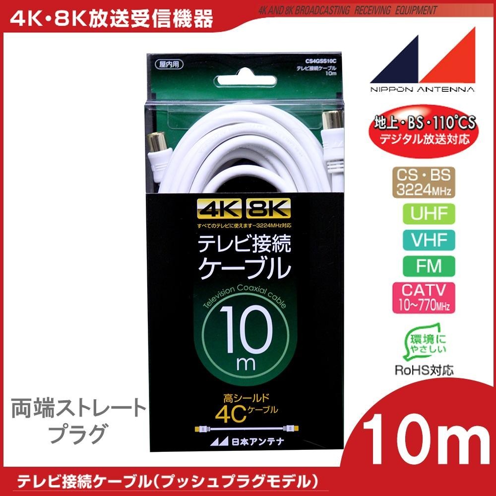 両端子金メッキ仕様で接触抵抗が低く、耐食性に優れたテレビ接続ケーブルです。 製造国:中国 仕様:屋内用プッシュプラグモデルS4C2重シールドケーブル(S4CFB:ホワイト) ※サプライヤー直送品 ご注文後5~6営業日後の出荷となります【商品名】日本アンテナ 4K8K対応テレビ接続ケーブル(4C)10m (両端ストレートプラグ) CS4GSS10C 2181805