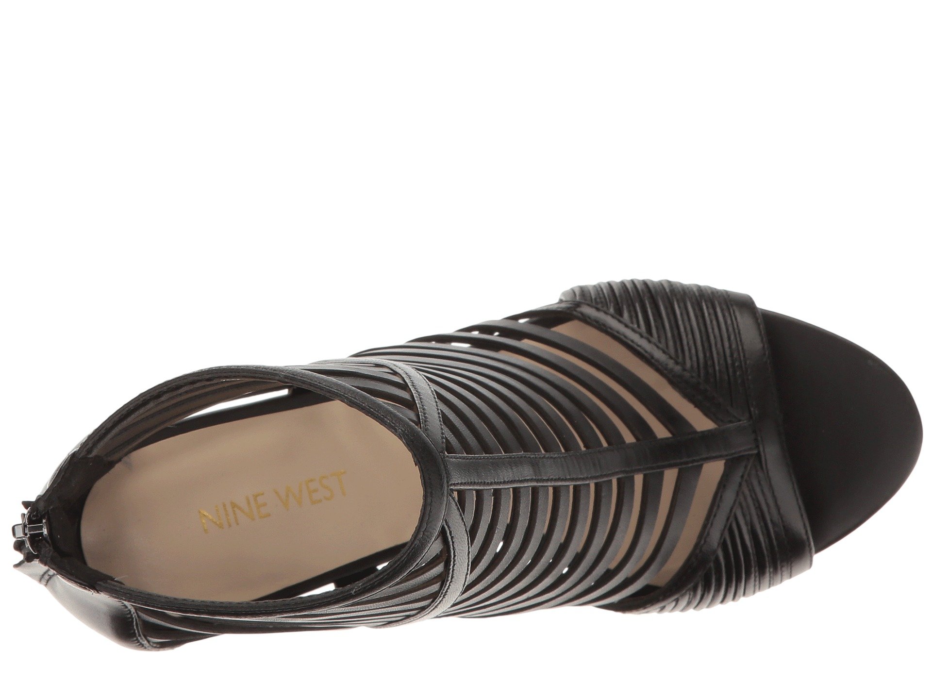 | Product Information SKU: #8998662Flaunt your fierce look with the Nine West? Jorine caged sandal.Leather upper.Back zipper closure. Open toe.Caged silhouette.Man-made lining.Lightly padded footbed.Wrapped heel.Man-made outsole.Imported.Product measurements were taken using size 8, width M. Please note that measurements may vary by size.Weight of footwear is based on a single item, not a pair.Measurements: Heel Height: 3 3?4 in Weight: 8 oz Shaft: 5 in |