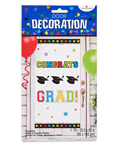 Studio : American Greetings Publisher : American Greetings Binding : Kitchen Product Description Celebrate the Grad with a bold and colorful door decoration! the festive design features fun Grad iconography and congratulatory copy. Perfect for doors, windows or walls, this reusable decoration is made of sturdy plastic and measures 33.5 in. X 65 in. It's sure to coordinate with any party decor or school colors. It's the perfect way to welcome guests and cheer the Grad!. 0