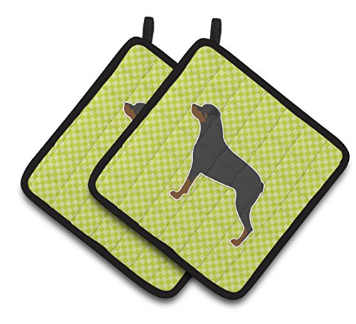 Caroline's Treasures Rottweiler Checkerboard green Pair of Pot Holders BB3866PTHD, 7.5HX7.5W, Multicolor