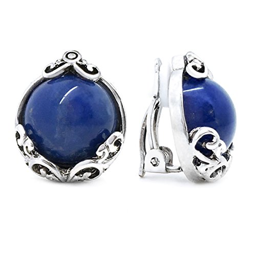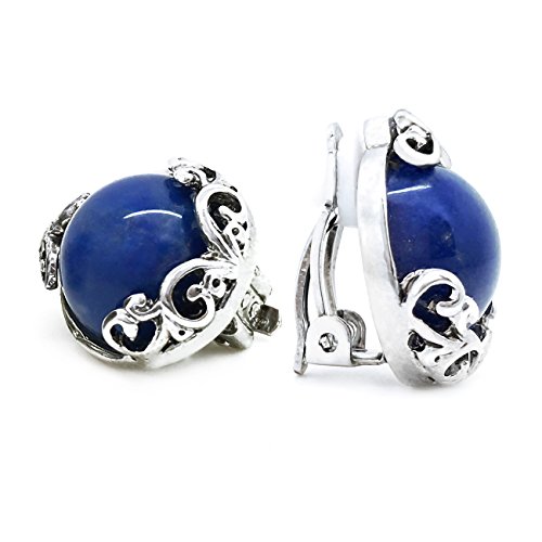 Made of base metal alloy, these half ball dome earrings are boasting a rich dark blue resin centerpiece sitting on an ornate frame setting. Diameter is about 16mm. Clip on backings secured these earrings with ease.Feature
